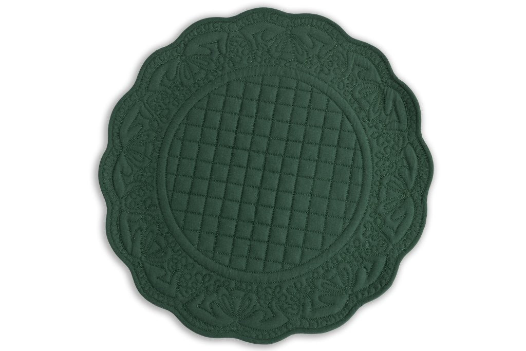 Embroidered Quilted Cotton Round Placemat (Forest Green)