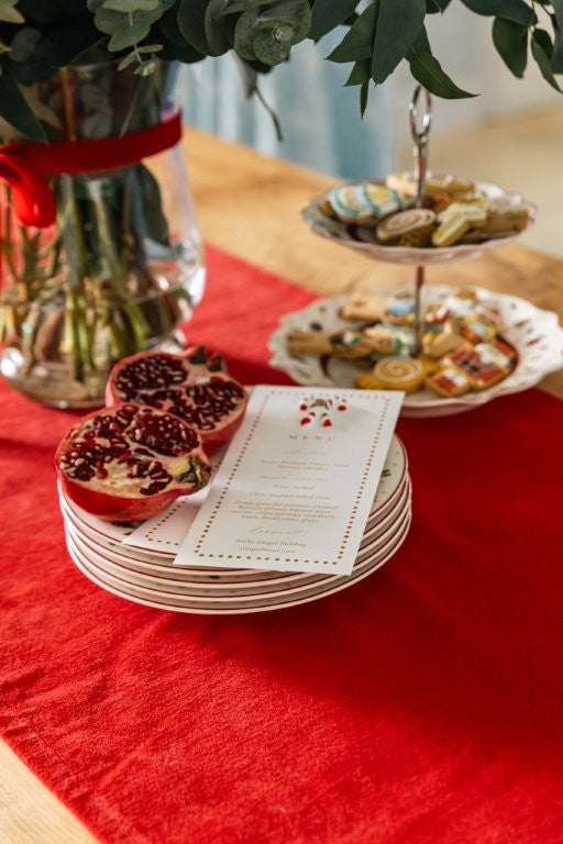 This rich and sumptuous red velvet table runner makes a visually stunning tablescape. Made from a luxurious 100% cotton fabric in a bold red colour, it will add a sophisticated textured finish to your table any time of year. The size is 50cm x 250cm, so the length is suitable for a variety of tables in different sizes and shapes. Add layer and depth to your table by finishing the look with our placemats or layering the runner on top of a tablecloth.